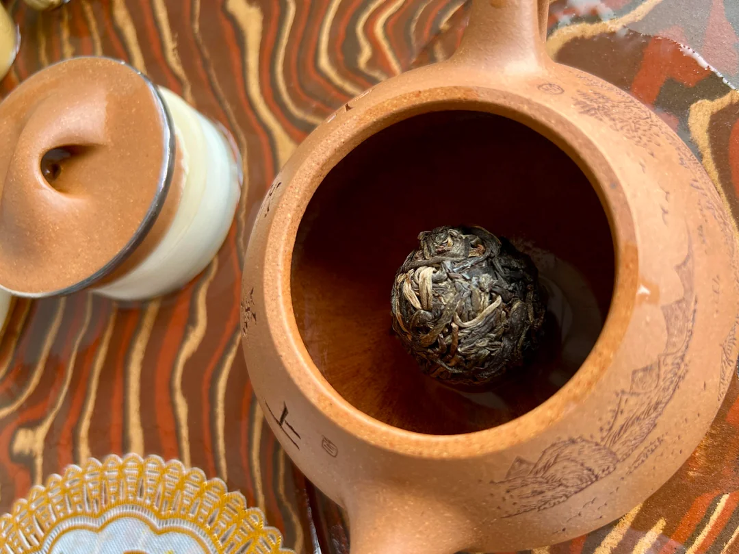 Savor 2020 Spring Gua Feng Zhai Dragon Pearl Ancient Tree Puerh raw Tea, where whispers of distant mountains and clear streams unfold in every sip~